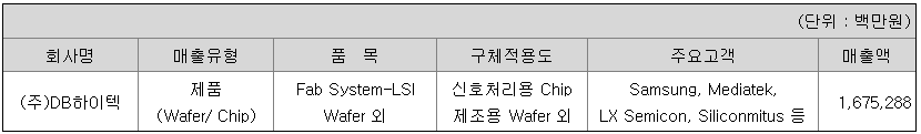 당사의 사업 부문은 연결대상회사이자 주요종속회사인 디비에프아이에스(주)를 포함하여 크게 IT분야의 SI(System Integration) 및 ITO(IT Outsourcing) 서비스 중심의 IT사업부문과 화학 및 철강제품 등의 무역업을 영위하는 무역사업부문, 'DB' 상표권 관리를 비롯해 그룹의 브랜드와 광고 활동을 총괄하는 브랜드사업부문으로 구성되어 있습니다.