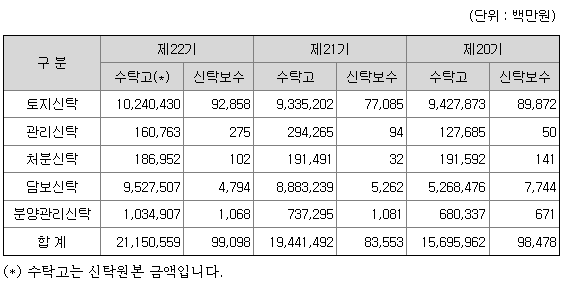 부동산신탁업무 관련 신탁보수