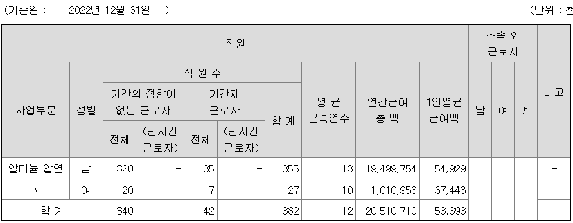| 남선알미늄 연봉 2022년 기준 공시자료 (0) | 2023.06.02 |