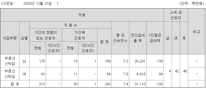 미등기임원의 평균연봉은 4억 2900만원이고 직원수는 11명입니다.