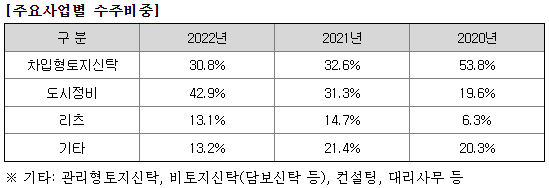 - 당사는 자산 및 자본, 시장점유율, 맨파워, 영업노하우 등에서 업계 수위를 차지하고 있으며, 신탁업계 신성장동력인 재건축, 재개발, 도시환경정비사업에 진출하였습니다.