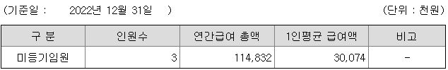 미등기임원의 평균연봉은 3000만원이고 직원수는 3명입니다.