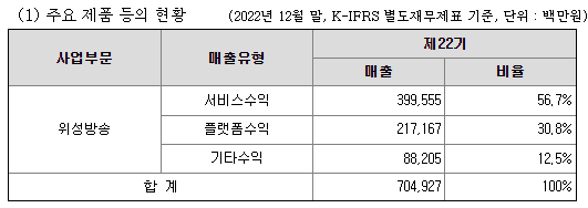 [1] 위성방송서비스사업 : (주)케이티스카이라이프