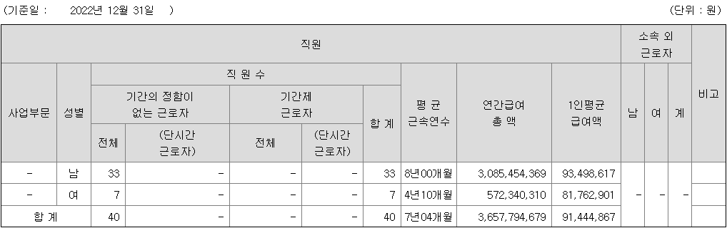 | 사업부문 | 성별 | 직원수 | 평균근속연수 | 평균연봉(백만) |