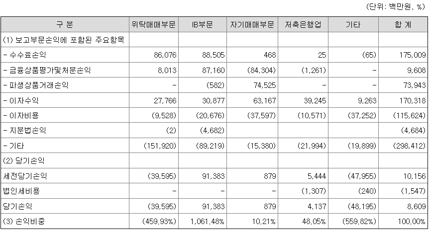 당사의 영업부문은 사업유형에 따른 조직단위로 구분되고 있으며, 이는 경영진의 조직관리 및 내부보고 구조에 기초한 것입니다. 영업부문별 손익 및 주요 자산에 대한 내용은 주석(35.영업부문)을 통해 확인할 수 있습니다.