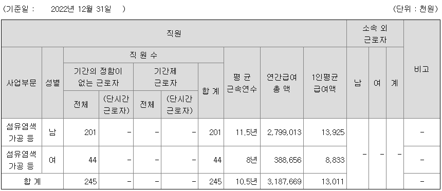 방림 연봉 2022년 기준 공시자료