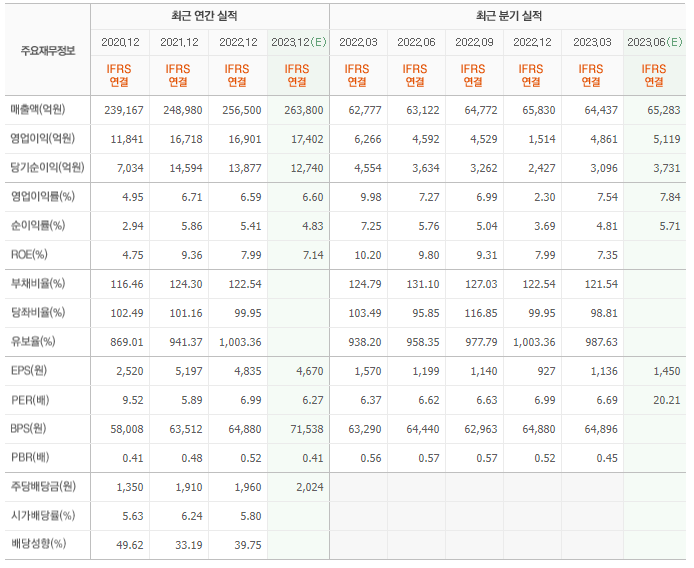 2022년 실적은 25조 6500억, 영업이익은 1조 6901억입니다. 그리고 영업이익률은 6.59%입니다.