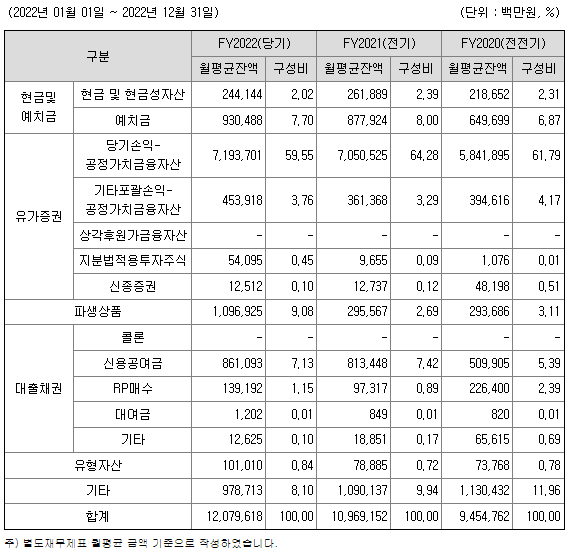 당사는 금융투자업자로서 경쟁력을 확보하기 위하여 지속적으로 위탁매매업(브로커리지) 비중을 줄이고 신성장 동력 발굴ㆍ육성 등으로 수익다변화에 힘써왔으며, 인적 경쟁력 확보와 조직 및 경영 안정화를 통해 안정적인 수익구조를 구축해 왔습니다. 이러한 노력으로 급변하는 금융시장 환경에서도 안정적이고 꾸준한 성과를 창출하고 있습니다.