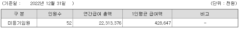 미등기임원의 평균연봉은 4억 2800만원이고 직원수는 52명입니다.