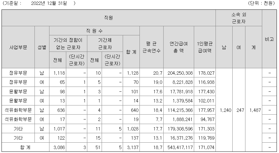| 정유부문 | 남 | 1,128 | 20.7 | 178 |
