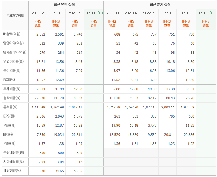2022년 매출은 2740억, 영업이익은 232억, 당기순이익은 219억입니다. 그리고 영업이익률은 8.46%입니다.