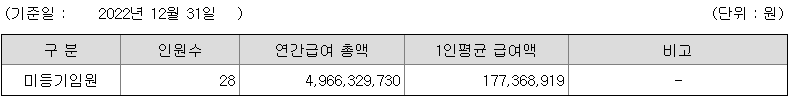 미등기임원의 평균연봉은 1억 7700만원이고 직원수는 28명입니다.