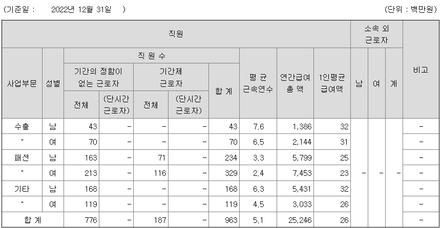 | 일신방직 연봉 2022년 기준 공시자료 (0) | 2023.06.06 |