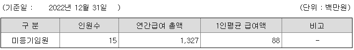 미등기임원의 평균연봉은 8800만원이고 직원수는 15명입니다.