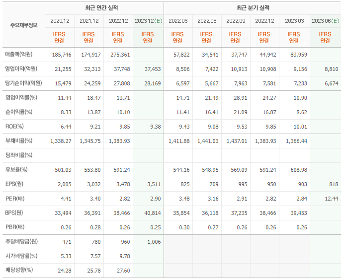 2022년 실적은 27조 5361억, 영업이익은 3조 7748억입니다. 그리고 영업이익률은 13.71%입니다.