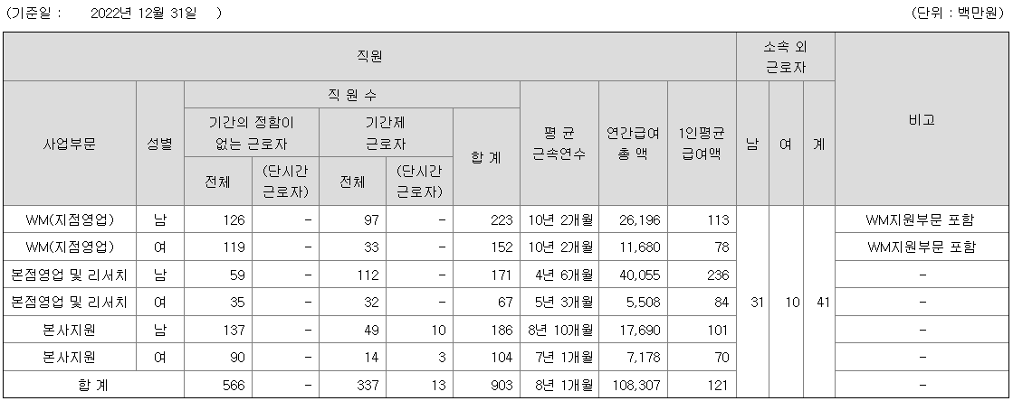 유진투자증권 연봉 2022년 기준 공시자료