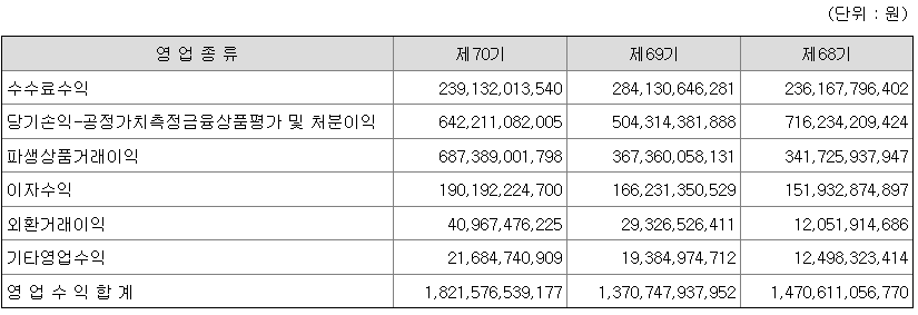 가. 종류별 영업실적