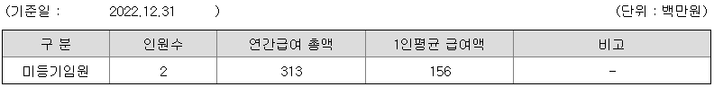 미등기임원의 평균연봉은 1억 5600만원이고 직원수는 2명입니다.