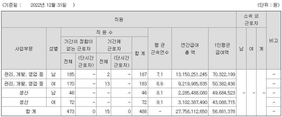 전체 평균연봉은 5600만원이고 직원수는 488명입니다.