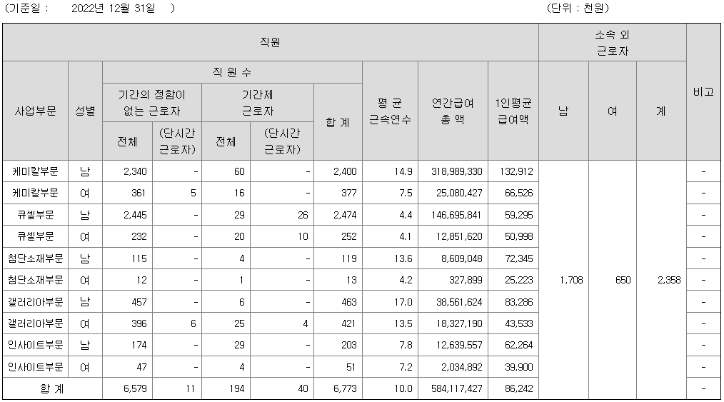 | 케미칼부문 | 여 | 377 | 7.5 | 66 |