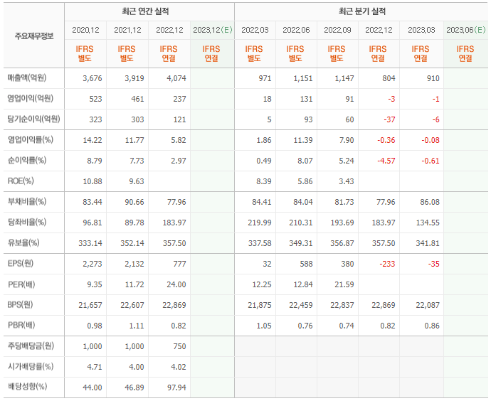 2022년 매출은 4074억, 영업이익은 237억, 당기순이익은 121억입니다. 그리고 영업이익률은 5.82%입니다.