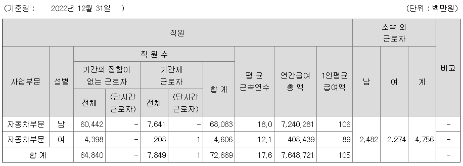 | 기아(기아차, 기아자동차) 연봉 2022년 기준 공시자료 (0) | 2023.03.19 |