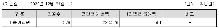 미등기임원의 평균연봉은 5억 9100만원이고 직원수는 379명입니다.
