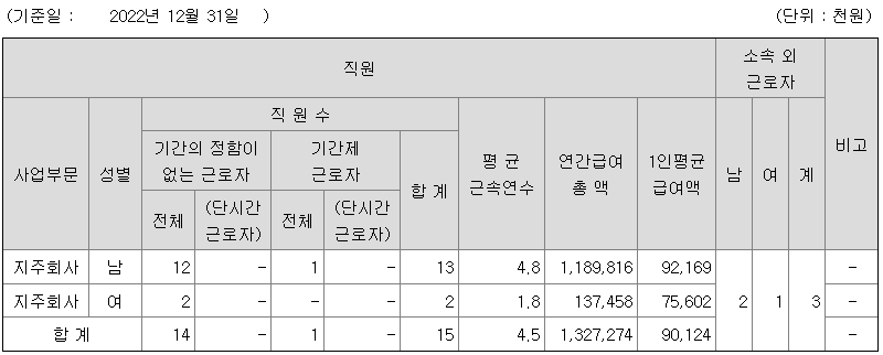 미등기임원의 평균연봉은 1억 3600만원이고 직원수는 2명입니다.