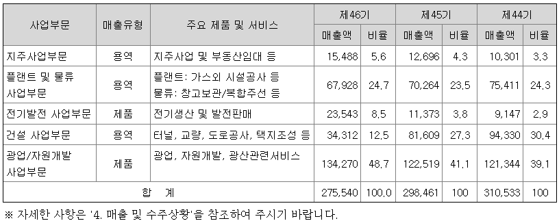 주식회사 경동인베스트와 그 종속회사(이하 연결실체)의 연결부문인 사업부문은 서로 다른 사업과 용역을 제공하는 전략적 사업단위입니다. 각 사업은 서로 다른 공사기술과 서비스용역 등을 요구하고 있기 때문에 별도로 운영되고 있으며, 각 사업부문별 제품 등은 다음과 같습니다.