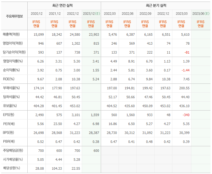 2022년 매출은 2조 4580억, 영업이익은 1302억, 당기순이익은 738억입니다. 그리고 영업이익률은 5.30%입니다.
