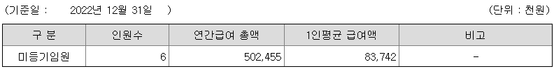 미등기임원의 평균연봉은 8300만원이고 직원수는 6명입니다.