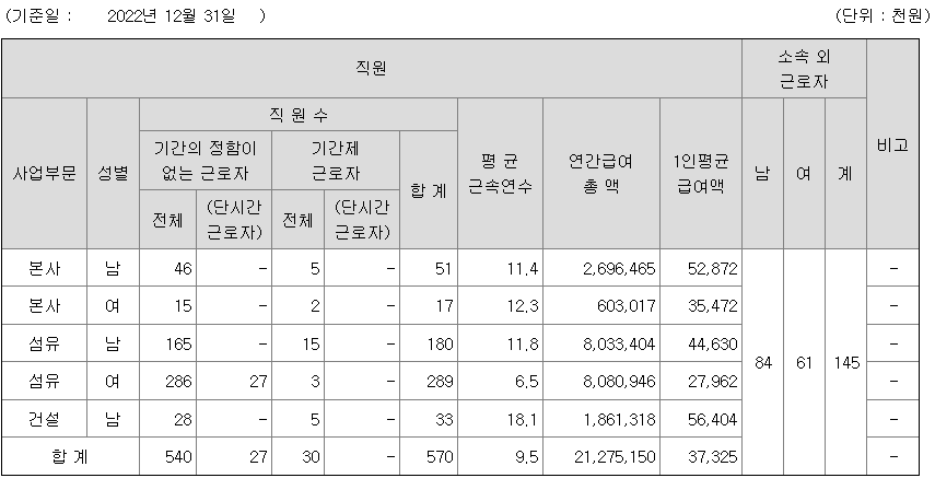 BYC 연봉 2022년 기준 공시자료