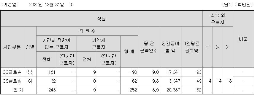당사는 GS그룹 산하의 종합무역상사로 철강, 석유화학, 에너지(석탄,  바이오매스,  바이오디젤 등)등의 무역/ 유통 사업부문,  수입차 PDI, 특장차 제조 등을 영위하는 물류 사업부문,  정유, 석유화학 플랜트 및  복합화력발전 설비 제조 사업부문 , 그리고  개발 및 기타 신사업 등 총 4개의 사업을 영위하고 있습니다.