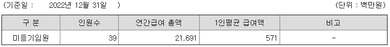 미등기임원의 평균연봉은 5억 7100만원이고 직원수는 39명입니다.