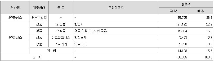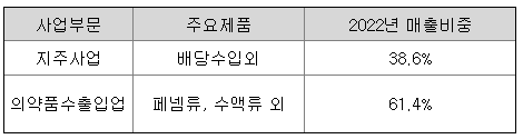 사업형 지주회사인 당사는 자회사와 손자회사들이 생산하는 원료, 완제의약품, 의료기기 등에 대한 해외사업을 직접 담당하고 있으며, 관리업무 대행 서비스를 비롯하여 자회사의 지분이익, 브랜드 사용료 수입, 계열사 관리 등을 통해서도 수익을 창출하고 있습니다.