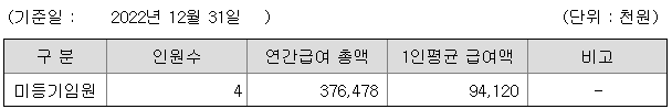 미등기임원의 평균연봉은 9400만원이고 직원수는 4명입니다.