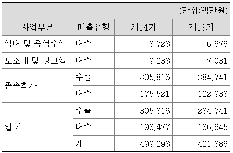 (1) 사업부문의 구분