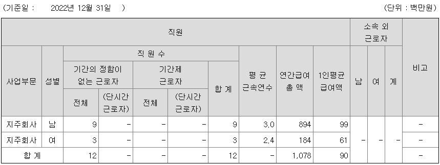 미등기임원의 평균연봉은 1억 2600만원이고 직원수는 2명입니다.