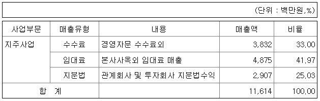 ① 지주회사 : 경영컨설팅 서비스업, 임대업, 투자업