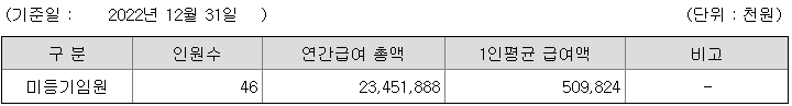 미등기임원의 평균연봉은 5억 900만원이고 직원수는 46명입니다.
