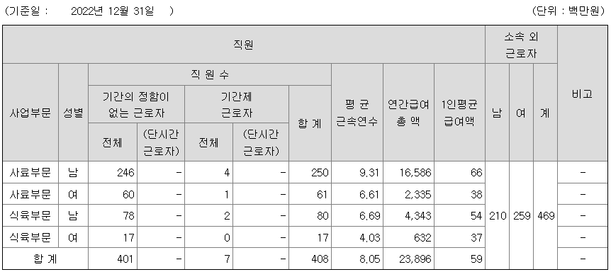 | 사료부문 | 남 | 250 | 9.31 | 66 |