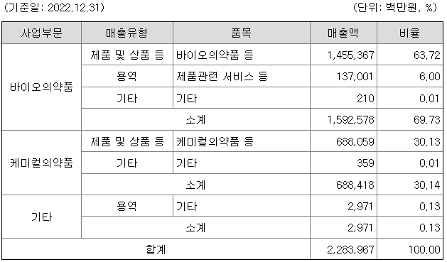 당사는 생명공학기술 및 동물세포대량배양기술을 기반으로 종양 및 자가면역질환 등의 치료에 사용되는 항체의약품을 개발, 생산하는 것을 주요 목적사업으로 하고 있습니다.
