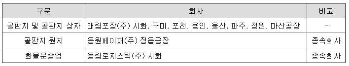 연결회사는 사업의 성격에 따라 3개의 부문(골판지 및 골판지상자 제조, 골판지 원지제조, 화물운송)으로 구분하였습니다.