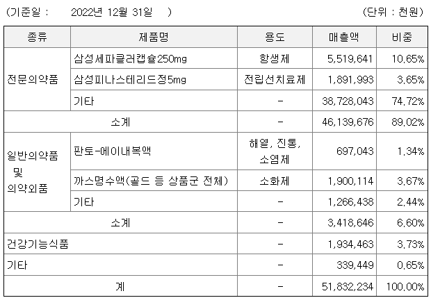 당사는 의약품 제조 및 판매업, 바이오사업, 건강식품 제조 및 판매업을 영위하고 있습니다. 전문의약품의 경우 항생제. 전립선치료제 등 80여개의 다양한 제품군을 바탕으로 판매대행 (CSO : Contract Sales Organization)을 활용한 마케팅 및 영업활동을 진행하고 있습니다.