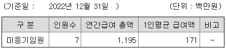 미등기임원의 평균연봉은 1억 7100만원이고 직원수는 7명입니다.