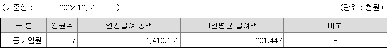 미등기임원의 평균연봉은 2억 100만원이고 직원수는 7명입니다.