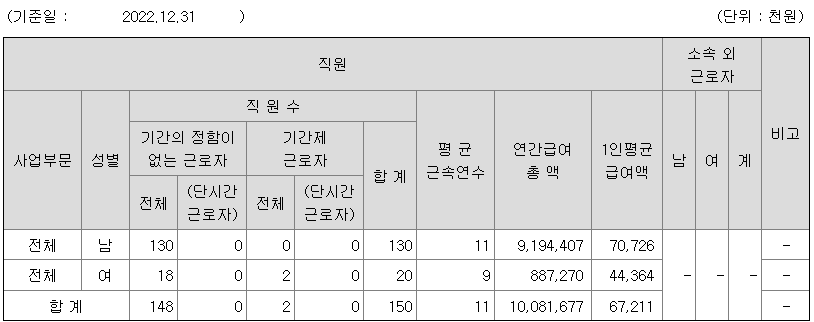 사업부문 성별 직원수 평균근속연수 평균연봉(백만)