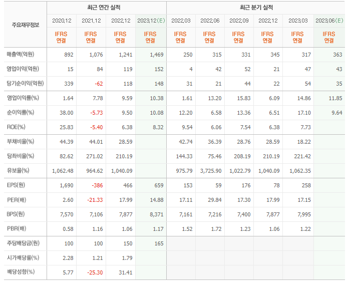 2022년 매출은 1241억, 영업이익은 119억, 당기순이익은 118억입니다. 그리고 영업이익률은 9.59%입니다.
