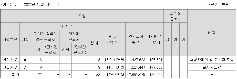 미등기임원의 평균연봉은 3억 1300만원이고 직원수는 4명입니다.