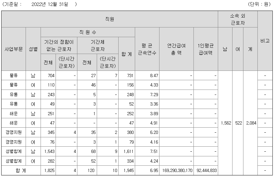 | 사업부문 | 성별 | 직원수 | 평균근속연수 | 평균연봉(백만) |